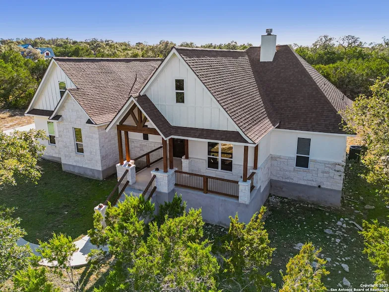Escape the city and embrace the beauty of the Texas Hill Country at 148 Restless Wind. This stunning retreat offers space, privacy, and unforgettable memories. Nestled in the gated community of Serenity Oaks, this meticulously maintained 5 bedroom, 3 1/2 bath home sits on a deep 1.26-acre lot surrounded by mature trees, ensuring peaceful and private living with no neighbors directly behind you. Step inside to soaring ceilings, expansive windows, and an open concept floor plan designed for both comfort and entertaining. Whether you're cozying up by the fireplace, hosting a family game night, or sipping coffee on the front porch or back patio, this home is the perfect setting for relaxation. Ideally located in the heart of the Hill Country, this property is just 10 to 15 minutes from Canyon Lake, 20 minutes from downtown Blanco, and 45 minutes from Fredericksburg Wine Country. Residents also enjoy access to top-tier community amenities, including a junior Olympic swimming pool, an 18-hole golf course, a playground, and a basketball court, all within the security of a gated entry. With luxurious finishes, an open-concept design, and spacious porches for enjoying the surrounding scenery, this home is a true Texas Hill Country retreat. Schedule your showing today.