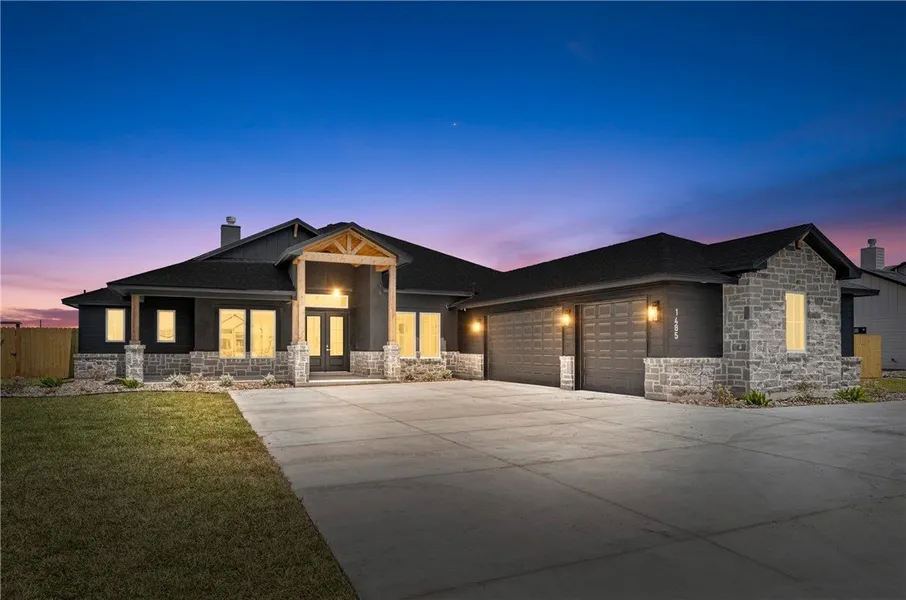 MOVE IN READY! Welcome to luxury country living in London's newest gated community, London Ranch Estates! Step into unparalleled elegance and sophistication with this stunning 4-bedroom, 3.5-bathroom luxury home. Nestled on over half an acre, this masterpiece offers the perfect blend of modern design and timeless craftsmanship. The grand entrance welcomes you into soaring cathedral ceilings and a thoughtfully designed layout. Entertain effortlessly in the formal dining room or relax in the expansive living spaces. The gourmet kitchen features a butler's pantry, ideal for hosting and storage, while the Jack-and-Jill setup adds convenience for guests. Work from home in the private office, then unwind in the spacious primary suite, complete with a walk-in shower, soaker tub, and dual walk-in closets. The backyard is an entertainer's dream, featuring an outdoor kitchen perfect for dining al fresco. With a 3-car garage, exquisite finishes, and a location that offers space and privacy, this home is a true sanctuary. Don't miss your chance to make this luxury haven by LKM Homes your own-schedule your private tour today!