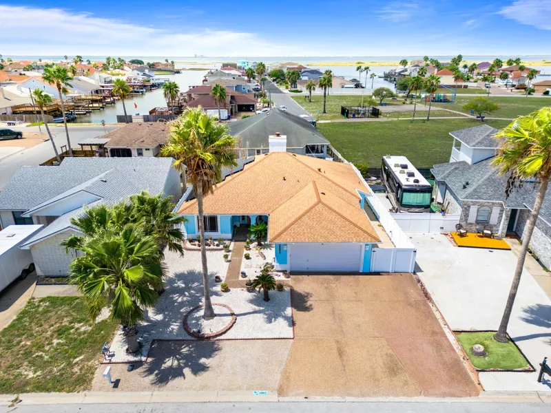 Major Price Reduction, off season is the time to buy! Updated Home close to the Water on North Padre Island! Great Curb appeal outside and Beauty inside with a very Comfortable Open Concept Living to Kitchen and Dining area. Primary Bedroom and Secondary beds on opposite sides of home. Wood Burning Fireplace, No Carpet, Covered Back Patio and Outdoor entertaining space. Spacious Primary En-suite with separate shower, garden tub, large closet. Low Maintenance Stucco Exterior, Landscaping and Vinyl Privacy fencing, completely enclosed back yard. Oversized Driveway. Recent updates, 2 yrs HVAC system including new ducts, water heater, stove, microwave, solar screens, new Vinyl Plank floors throughout, fresh paint inside and out! Want to Save $500 or More Monthly? Major investment (paid off) Solar Panels and Backup Generator which provide $0 Elec Bills. Boat Ramp and Dock at end of street, Short drive to the Beach, Restaurants, other Island Attractions and Corpus Christi just across the Bridge. Shown by Appointment!