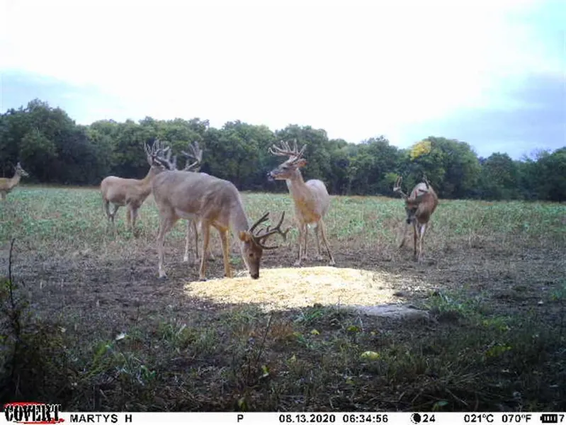 Approximatley 58 acres are currently in agricultural production. The current crop is wheat and there is a tenant farmer in place. Once the wheat is harvested there will most likely be soy beans planted. Double crop soy beans often stay green into the early Kansas Muzzle Loader Season. On the East side of the property is a 27 acre hay meadow that also creates income. Access from the meadow allows a hunter to sneak to the backside of the crop field undetected early in the morning. A very secluded field is situated next to the dense timber and is a perfect ambush location for bucks on their way back to bed in the mornings. Access from the West is through the pasture. The pasture provides a source of income. The grass that grows in the pasture can be used for year round cow/calf pair grazing or a short season lease for yearlings over the summer months. Two creeks and one pond are located in the pasture and it is fenced in.