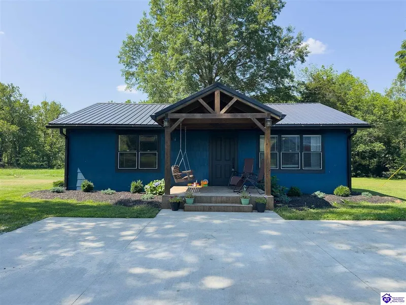 Discover this beautifully maintained and remodeled 2-bedroom, 1-bath open concept home nestled on nearly 3 acres in peaceful Leitchfield, KY. This charming property offers a perfect blend of modern comforts and serene country living. Enjoy the spacious 2 car garage along with the 2-bay pole barn, perfect for all your storage and hobby needs. The serene covered front porch and back deck provide great spaces for entertaining and maximum relaxation, while a picturesque creek meanders along the back of this stunning 3 acres, adding yet another splash of natural beauty. Conveniently located on a quiet road, you'll relish the tranquility without sacrificing proximity to local amenities and activities. This gem of a property is the perfect retreat with room to grow and explore.