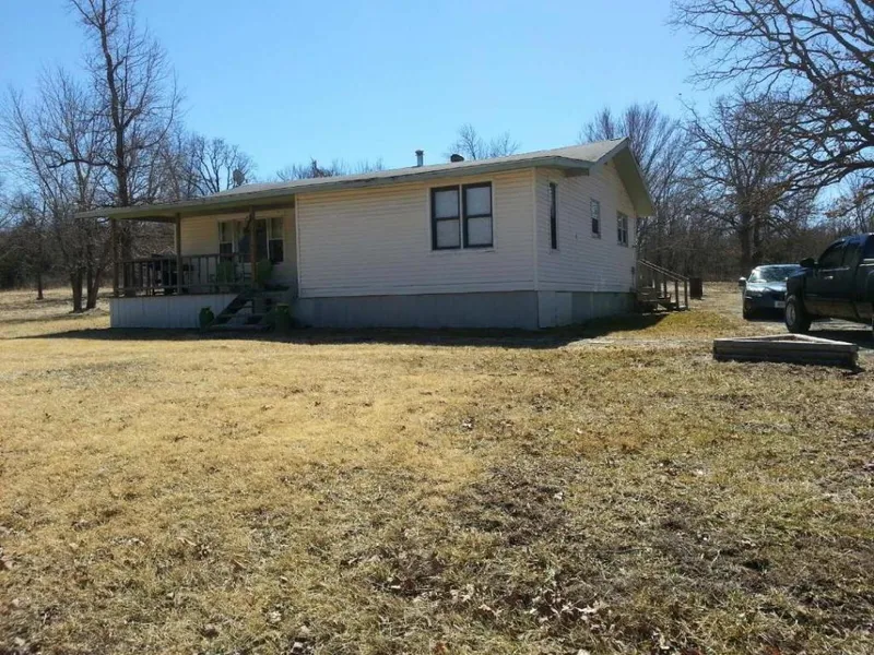 PRICED TO SELL! Own almost 4 acres with a 2 bedroom home for $40,000! Home features a covered front porch, back deck for grilling, 2 bedrooms, 1 large bathroom with a garden tub/shower combo. Kitchen has a spot for bar stools at the counter, as well as a dining area and newer cabinets. Electric/Propane heater is the current heat source in the home. Buy Now As Is at $40,000 OR Seller will put in central heat & air system with a sales price of $45,000. (this is not a manufactured home, the metal skirting under the porch is just to keep it blocked off)
