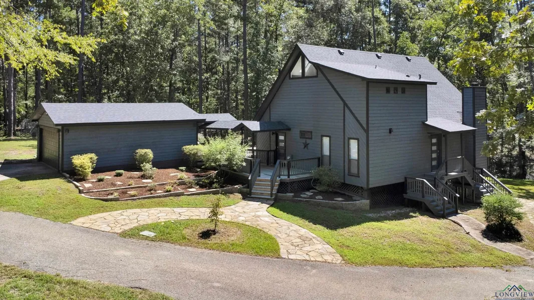 Looking for space, privacy, and modern updates? This beautifully updated 3-bedroom, 2-bath home sits on 5 gorgeous wooded acres just minutes from Tyler. With 2,400 sq ft of living space, there’s room to spread out and enjoy peaceful country living with all the conveniences nearby. Inside, you’ll find vaulted ceilings and a wall of windows in the living room that bring in tons of natural light and showcase the stunning views. The home has been fully updated with a brand-new roof, fresh paint, new fixtures and doors, updated kitchen and baths, and spray foam insulation underneath for better energy efficiency. The true master suite is upstairs, a spacious retreat featuring a beautifully updated bathroom with a soaking tub, walk-in shower, and dual vanity. Downstairs, you'll find a comfortable guest bedroom, full bathroom, and a newly constructed bedroom that could easily serve as a second master. The newly built deck is perfect for relaxing or entertaining and has been reinforced to support a future bathroom addition directly off the new bedroom, if desired. Other great features include a tankless water heater and a gated entry for added peace of mind. Don’t miss your chance to own this perfect blend of country charm and modern comfort.