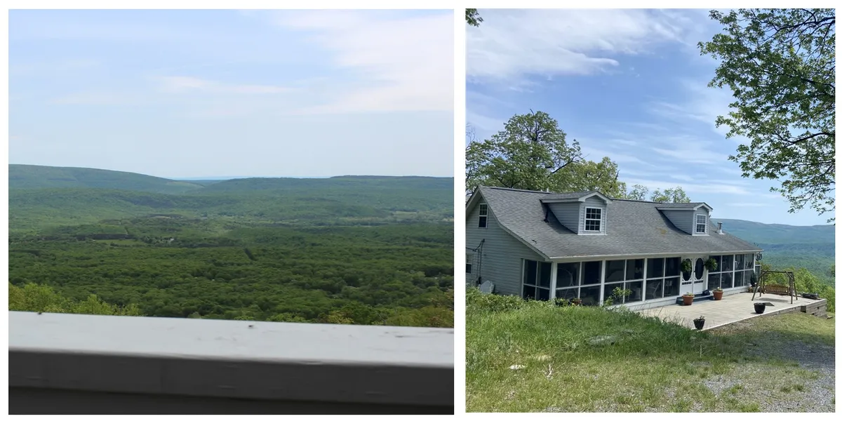 Vacation Rental or full time property...your choice. 13.2 acres with a fantastic view. Sit on the screened in porch or the deck overlooking the beautiful view. Great room with stone gas fireplace. Large Master suite with sitting room leading to the master bath and to the walk-in closet. Total of 3 bedrooms and 3 full baths. Refrigerator, dishwasher, washer and dryer are fairly new. Washer and dPartial full basement for lots of storage.