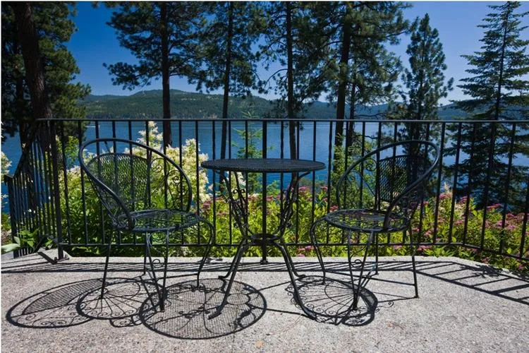 Scenic patios boast views of Lake Coeur d'Alene and pine-, fir- and tamarack-studded mountains. By day, bask in sunny North Idaho perfection from the Sandy Beach at the waterfront. Swim fish or launch almost any type of watercraft from the 1110 sq ft, 3-slip Boat Dock with Lift. Gather around the Outdoor Fireplace at days end for an evening of star-gazing. An adorable single-room Duck House on the waterfront might be suitable as artists studio or a play cabin.