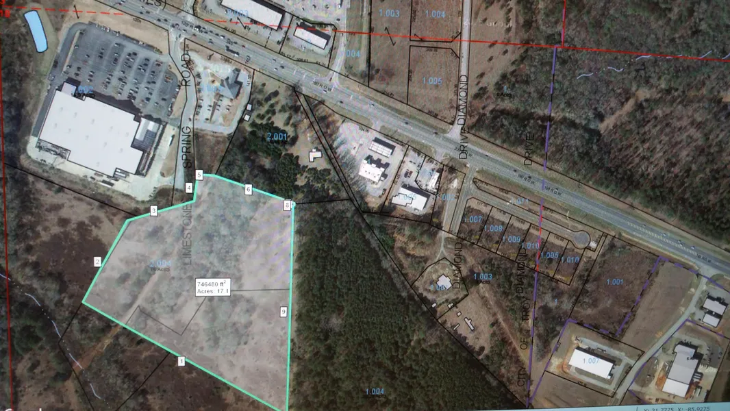Research Parcel InformationThe property is at the end of Limestone Springs Road that runs between Troy Bank & Trust and Lowe's, across from Wal-Mart in Troy Alabama.