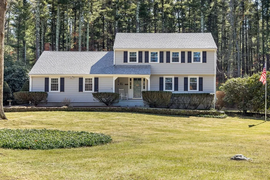 A private lane lined with beautiful rhododendrons is the entry for this classic 4-bedroom Garrison Colonial; it sits on nearly 2 acres that abut conservation land. The 1st floor offers a living room w/built-in cabinets & bookshelves plus an eat-in kitchen w/solid wood cabinets, glass top range, dishwasher & coffee bar; there is an adjacent room that's perfect for a remote office or study. Everyone will enjoy the casual lifestyle w/the open floor plan; a spacious dining room which can seat 12 for dinner next to a cozy fireplace and opening to a lovely sunroom w/cathedral ceiling and wall-to-wall windows looking out to the backyard! On the 2nd floor there is a main bedroom w/dbl closet and 3 add'l bedrooms with great closet space & wood flooring - plus an updated full bath. There is room for expansion in the walk-in attic space above the garage & a large basement for a workspace. Special features include an attached 2 car garage, AC, newer windows & wood floors thru most of the home.
