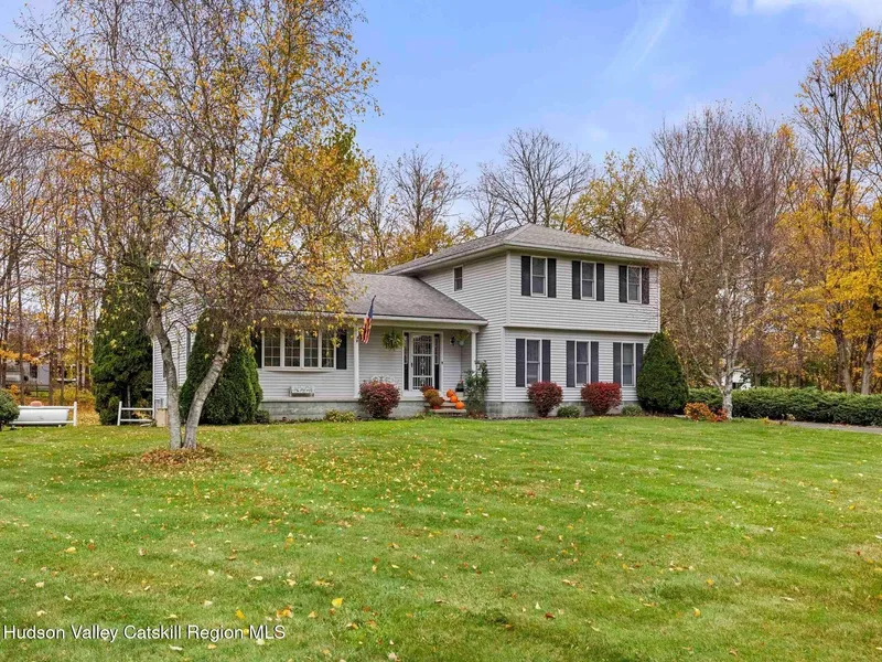 Nestled gracefully along a serene neighborhood road, this nicely appointed Colonial offers a perfect balance of warmth, sophistication, and livable luxury. Bathed in natural light from an abundance of windows throughout, the home's open layout flows effortlessly from one inviting space to the next. The updated kitchen is the centerpiece for cooking and entertaining-featuring quartz countertops, stainless steel appliances, and generous cabinetry that blend style and function. The adjoining dining area and vaulted living room, accentuated with skylights, create a bright, uplifting ambiance ideal for both casual gatherings and formal entertainment. A spacious, step-down family room anchored by a stately brick fireplace invites relaxation, while offering easy access to the outside living area. Upstairs, four well-appointed bedrooms and two full baths provide serene retreats for family and guests alike. The partially finished basement offers flexible space, currently serving as a music studio and home gym. Outside, a backyard sanctuary unfolds-complete with a multi-level deck, above-ground pool, and mature woods with a peaceful seasonal creek that evoke a sense of country serenity. A roomy two-car garage and ample storage throughout enhance practicality without compromising charm. Located in an exclusive ''no-through'' neighborhood just minutes from Kingston, the Town of Ulster, Saugerties, and the Kingston-Rhinecliff Bridge, this residence combines refined living with exceptional convenience. Fifteen minutes to Amtrack and eight minutes to Trailways Bus terminal and uptown Kingston. Come call the Catskills and the Hudson Valley home. A 3D Walkthrough Tour is available in the digital Lookbook or by request from the listing agent.