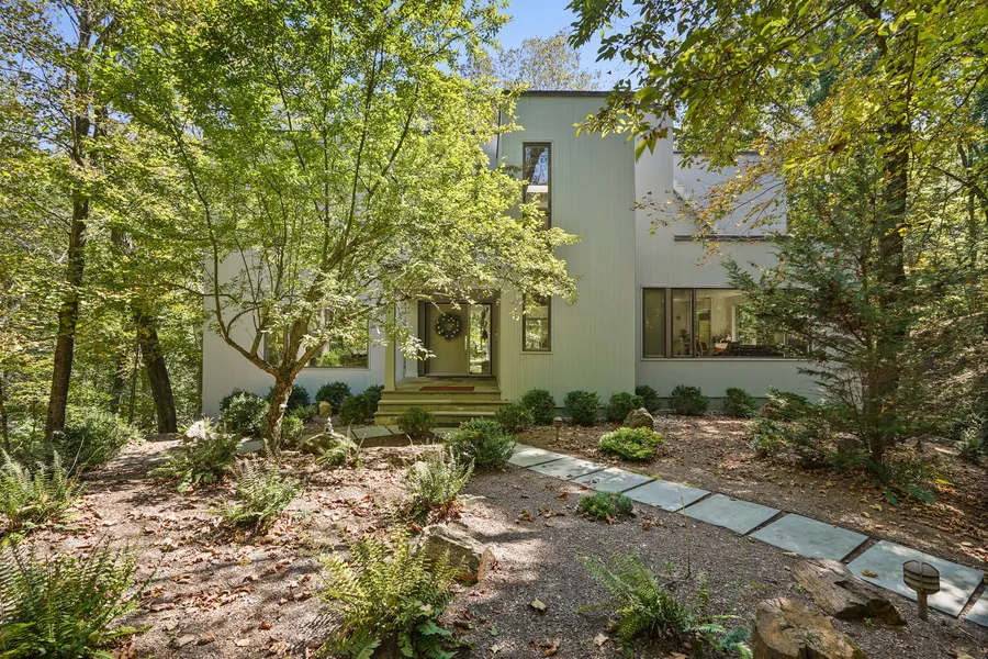 Welcome to 15 Sarles Road, a true sanctuary nestled amongst the treetops, offering unparalleled views and an abundance of natural light. This architectural masterpiece seamlessly blends modern design with the serene beauty of its surroundings, creating a perfect retreat for discerning buyers. The main level features a state-of-the-art kitchen with premium appliances, a prominent quartzite island, sliding glass doors leading out to a spacious deck, and opens to a sun-drenched family room. Flanked by an equally bright and vivacious dining room and foyer complete with an interior fountain, the first floor is capped by an expansive living room with a wood-burning fireplace, Pella windows throughout, and an array of modern amenities that enhance your lifestyle. Upstairs, three spacious bedrooms, each complete with ensuite bathrooms provide a peaceful retreat with ample closet space and stunning, panoramic views of the treetops below. The primary suite features an office, walk-in-closet, and a luxurious en-suite bathroom and jacuzzi tub, perfect for unwinding after a long day. The lower level provides an unofficial fourth bedroom which can double as a recreational area, complete with a full bathroom, ample storage opportunities, mechanicals, and leads out to a bluestone patio as well as a roomy two-car garage. The home's exterior is equally impressive featuring unrivaled privacy alongside a 55,000 gallon, 50' by 21' pool and spa with a bluestone deck. This gorgeous contemporary home is a rare gem that offers the perfect blend of modern luxury and natural beauty. Don't miss the opportunity to make this extraordinary property your own.