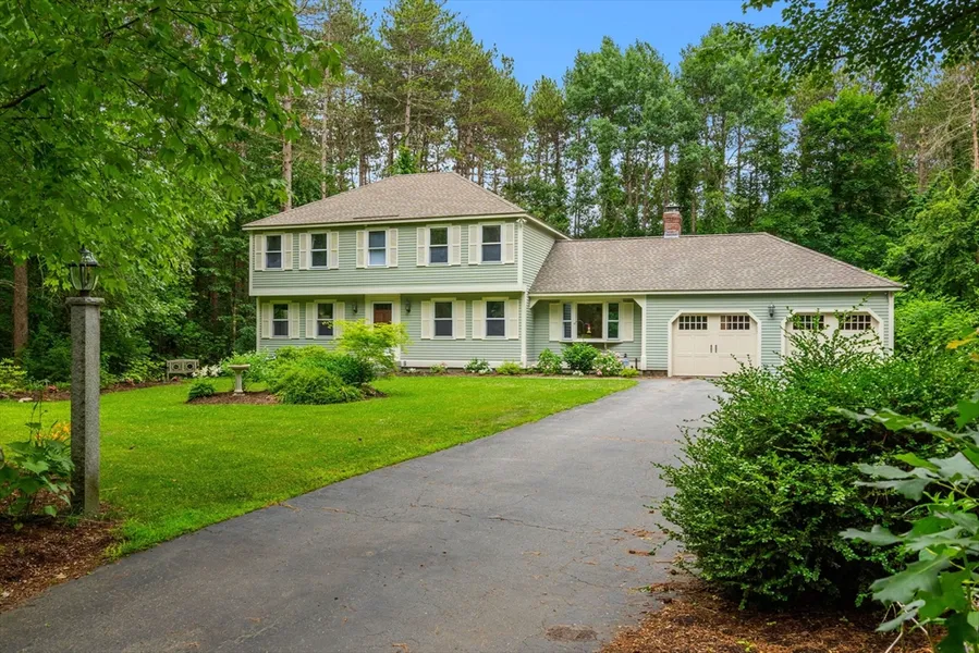 Set on over 2 acres in a lovely small neighborhood near Harrison S Ripley Forest, hiking trails and Baddacook Pond, this traditional colonial home offers both comfort and convenience. The well-maintained property features a bright eat-in kitchen with granite counters and stainless-steel appliances, opening to a family room with a fireplace and a dining room, both with hardwood flooring. The front-to-back living room, also with hardwood floors, is versatile and welcoming. Half bath with tile flooring, and a laundry area completes the first floor. The second floor includes four bedrooms and two full baths with granite countertops. The primary bedroom has an en-suite bathroom and shower. The partially finished lower level provides bonus rooms perfect for mixed-use, including a sound studio and unfinished storage space. The exterior shines with lovely blooms, a flat spacious driveway and a two-car garage. This home is the perfect blend of practicality and charm, set in an ideal location.