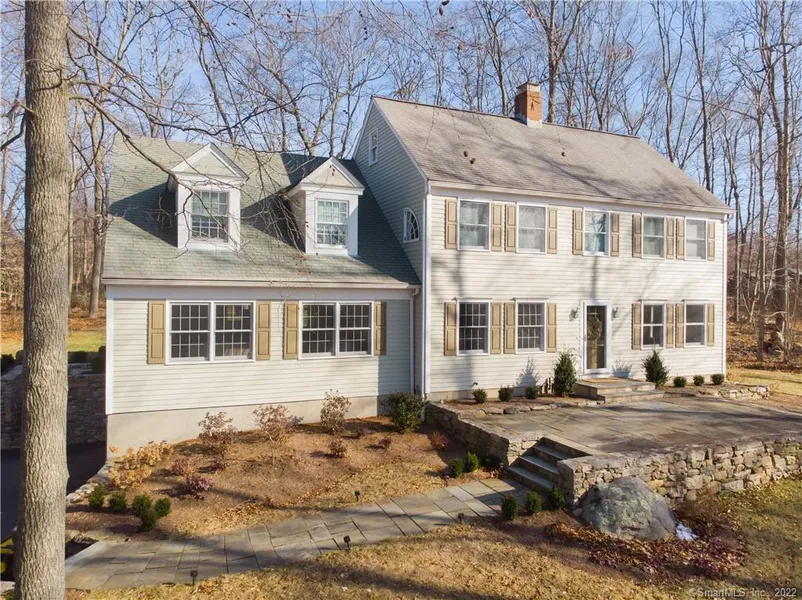 Exceptional Colonial located in a private, hillside location.Nearly 2800 sq.ft of living space and 1 acre of property.Many recent updates and upgrades over the past 2 years including: gorgeous stone walls and patios, all new landscaping, freshly painted trim and walls, updated bathrooms (2 of them). newer mechanicals, windows and flooring. New bedroom carpeting, newly painted built-ins and so much more! Attic is finished as a carpeted playroom and extra storage space.The upper hallway has a built-in desk for office work or homework nook. The front to back living room is spacious and bright with the beautiful bow windows allowing the sunshine to stream in! Hardwood floors throughout the first floor make maintenance a breeze.The kitchen is updated and has casement windows over the sink to allow natural light. Newer stainless appliances; gas stove, dishwasher and refrigerator are highlighted by the quartz counters with multiple cabinets and pantry making for more than ample storage.