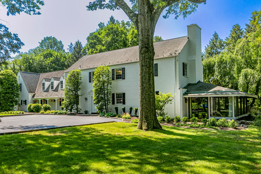This elegant white brick home, cherished by the same family for over five decades, is situated just a mile from The Lawrenceville School and the restaurants of charming Main Street within the Long Acres enclave. These quiet streets dotted with majestic trees have easy access to I-295, yet the leafy setting is positively idyllic. A sunken bluestone patio, an intimate brick patio and a solarium all bask in the setting. A marble-floored foyer gives way to grandly proportioned rooms with high ceilings and details that you just don’t find in newer homes, including deep crown molding, charming niches and five fireplaces. The richly paneled living room is the go-to locale for evening entertaining, while the adjoining sunroom, wrapped in floor-to-ceiling windows and burnished wood, is magical in the winter and cool in the summer. The large family room and adjoining dining room, complete with a built-in bar, are the light-filled heart of the home. The kitchen offers modern stainless steel appliances and durable granite countertops. With an office and laundry room both adjoining, this wing of the house is a modern multi-tasker’s dream. Upstairs, four full baths sporting timeless white tile serve five bedrooms, including a two-room apartment-style suite atop the back staircase offering extra privacy for holiday guests or sleepovers. The spacious primary suite is heavenly with a fireplace and three walk-in closets. Storage throughout is plentiful, a rare perk in a period home. Don’t skip the basement! With brick flooring and real wood paneling, the game room has a pub-style atmosphere that pleases fun-loving guests of all ages. The acre property includes a parking court neatly edged with Belgian block and pretty garden beds, as well as a separate driveway that leads to the attached 3-bay garage. With this much interior space, unexpected outdoor serenity, unparalleled convenience and undeniable beauty, it’s no wonder this home hasn’t changed hands in fifty-plus years!
