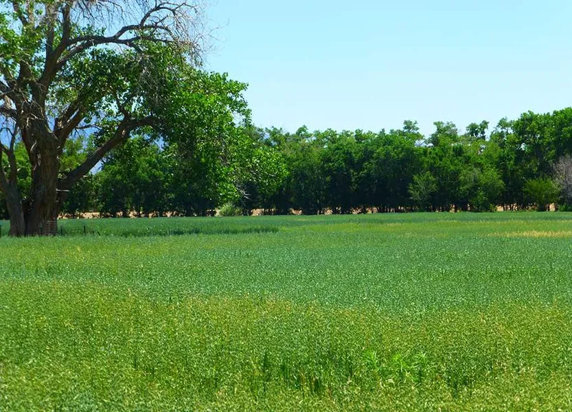 The Paseo del Rio Grande is a slightly irregular shaped with its longest boundary (east) fronting along the Corrales Riverside Drain. There is a solitary wooded bridge (photo in brochure), one of the only bridges of its type for miles, crossing the Corrales Drain providing access to the Rio Grande River Bosque. The tract also fronts paved Alamo Road on its west boundary. The Paseo del Rio Grande's acreage is 15.1671 per the most recent survey completed.
