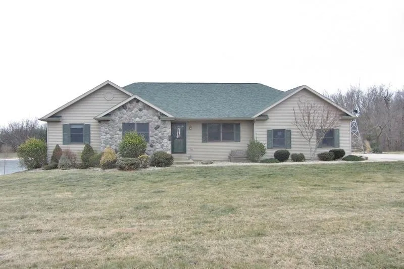 Here is your ticket to Paradise! 15+ acres nestled on a lovely tree bordered lot. This property offers you country living with close to town convenience. The 2 acre pond is stocked with bluegill, bass and croppy. It has a Weir box to control the water table and an aeration system and pump driven by a windmill. Approx 10.8 acres are wooded with trails. The home is well maintained and the main level accommodates all your living needs. The lower level has a den that is used as a 4th bedroom, spacious family room, full bath and an ample storage area. The kitchen appliances except the dishwasher were new in 2012. Living rm. dining rm and kitchen have hardwood floors. New shingles 2012. The finished heated pole barn is the ideal man cave. It has a gas heater, wood burning stove and individual satellite system for TV. Want a horse or beef cow? There is a stall, fenced in area and grain bin to accommodate. Dont miss out on this special property! Washer and dryer are negotiable. Lot dimensions are approximate and subject to survey.