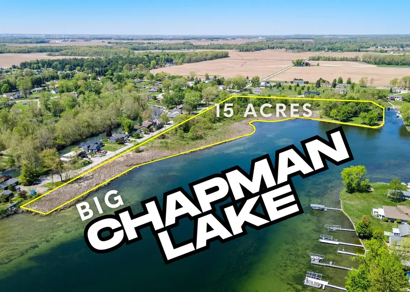 Once-in-a-Lifetime Chapman Lakefront Property – 15+ Acres of Pure Potential An extraordinary opportunity to own over 15 acres of pristine lakefront on the coveted Chapman Lakes—a rare find that blends breathtaking natural beauty, unbeatable recreational access, and serene privacy. With panoramic water views and abundant wildlife, this one-of-a-kind property invites you to create your dream estate, family retreat, or investment legacy. Located on the shores of spring-fed Big and Little Chapman Lakes (638 acres combined), this land offers the best of both worlds: high-energy lake fun and peaceful, nature-filled escapes. Big Chapman is a haven for all-sports enthusiasts—perfect for boating, water skiing, and jet skiing—while Little Chapman offers quiet, no-wake waters ideal for kayaking, fishing, and unwinding. Fishing here is a year-round passion, with popular species including bluegill, bass, pike, and walleye, plus seasonal tournaments and ice fishing. The lakes are known for clean, clear waters, supported by a protected watershed and 260 acres of preserved wetlands. Enjoy a strong local sense of community, with events hosted by the Chapman Lakes Conservation Association, including lakeside clean-ups, fish fries, pancake breakfasts, and the beloved July 4th flotilla and fireworks. Whether you're seeking a private getaway, a lakeside development opportunity, or a lasting family legacy, this property offers a truly unmatched setting in one of Indiana’s most desirable lake communities.