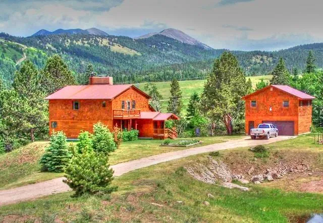 Beautiful setting for this nice mountain home on over 15 acres off Pass Creek Rd. Big timber setting with long open views too. Comfy guest quarters above the detached 2-car garage. No HOA nor dues here. Fenced for horses and about 600 ft. of Pass Creek live water to attract the abundant wildlife. Fireplaces and wood stoves plus unique passive solar heat system too. Full basement. Price reduced.