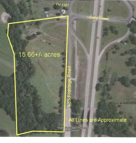 15.66+/- AC with 1300 ft.+/- of road frontage on I35 access road with high visiblity (2 way traffic). Buyer to pay roll back taxes if applicable. Buyer to verify all information.