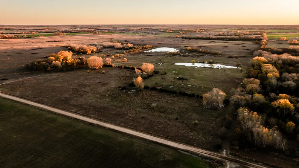 The main attractant to this farm is the proximity to groundwater and the flowing springs that have water available year-round. The west pond is a spring-fed pond and even in the middle of our recent drought stayed full and held water. At its capacity during a wet year, this farm can hold nearly 10 1/2 to 11 acres of water as well as the fresh flowing spring water. The heart of this farm is the larger pond that can occupy nearly 9 to 10 acres when full. The large area is shallow around the south and west banks. Allowing for future owners to plant key duck habitat food sources like Japanese Millet, Buckwheat, and sorghum. In the fall and winter months in Kansas, the wind can change from one day to the next. This property has excellent points and trees to hide multiple blinds so that you can hunt that verifying wind and give yourself the best opportunity to finish birds!