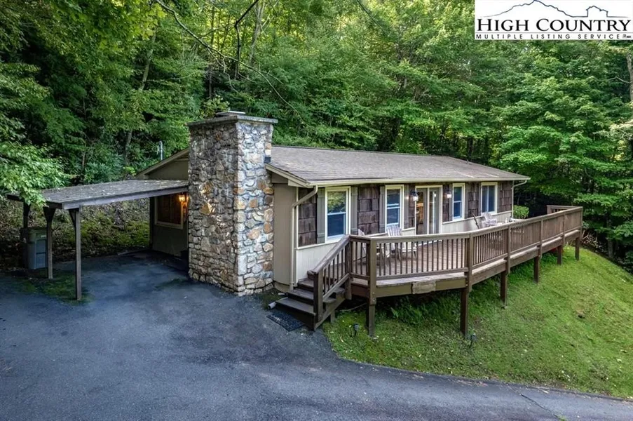 Price improvement- don't miss out! Welcome to The Getaway! Newly updated 2 bedroom/ 2.5 baths, one level home tucked away in downtown Banner Elk. Updates include new 30 yr roof in 2023, new heat pump with A/C in 2022, new stainless refrigerator and dishwasher in 2024, encapsulated crawl space and insulation in 2022, primary bath remodeled to the studs in 2022 as well as new carpet in 2022. Tongue and groove pine ceilings and interior painting were also added to enhance the warmth and charm of the home. living area features a stunning stone gas fireplace accented by a warm wood wall, creating the perfect focal point for relaxing evenings or entertaining guests. Tastefully furnished, all you need to bring is your suitcase! Quiet and peaceful location, just a short walk to the Banner Elk Greenway Trail leading to the Banner Elk Park, breweries, restaurants, theater and all Banner Elk has to offer!