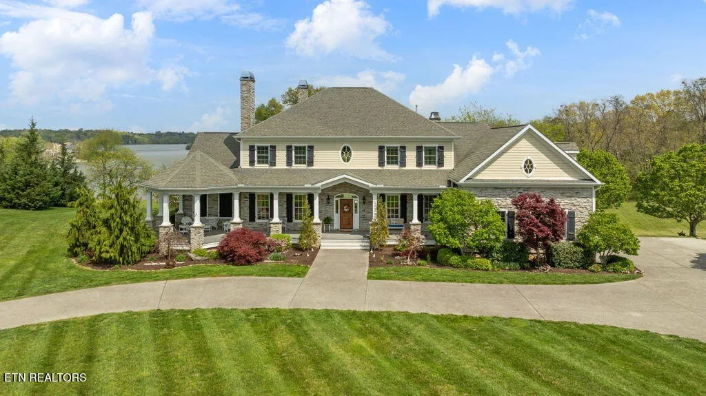 Experience luxury lakefront living in the prestigious gated community of Thunder Pointe subdivision. Originally the custom model home for the subdivision, this exquisite estate is perfectly positioned on 2.53 acres of protected, private land with unobstructed views of the lake. Thunder Pointe offers an array of upscale amenities including lake access, covered boat slips, a clubhouse with tennis courts, green spaces, and more-creating an unparalleled lifestyle experience. As you arrive, a circular driveway, beautifully manicured landscaping, and a spacious covered front porch create a grand first impression. Step through the solid mahogany front door into a home that's been designed for everyday luxury, with extensive crown molding, hardwood flooring, and high-end finishes throughout. The heart of the home is the gourmet kitchen, complete with granite countertops, an eat-in bar top, a gas range, double convection KitchenAid ovens, a newer KitchenAid dishwasher, and a new KitchenAid refrigerator. The kitchen opens into a cozy keeping room with large windows that frame sweeping views of the lake-ideal for morning coffee or casual evenings at home. The main-level primary suite offers tranquil lake views and includes a spacious ensuite bathroom with a soaking tub, walk-in tile shower, double vanity, new toilet, and walk-in closet. Also on the main level: a beautiful home office featuring wood coffered ceilings, custom built-ins, and smart lighting. Enjoy peaceful views from the living room, which features a fireplace and built-in cabinetry, or unwind in the sunroom with wood-paneled ceilings, a ceiling fan, and gorgeous lake views. Upstairs, you'll find a second primary suite with ensuite bath and huge walk-in closet, plus three additional bedrooms, a full bath, and a large bonus/media room with great storage. The finished walkout basement adds even more flexibility with a large lakeview space, full bath, and kitchenette-ideal for entertaining, guests, or multi-generational living. Additional highlights include a transferrable lease for a covered boat dock, irrigation system, and newer HVAC. Enjoy peaceful, gated lakefront living-only minutes from everything. This home has it all. Don't miss your chance to own this breathtaking lakefront retreat-schedule your private tour today!