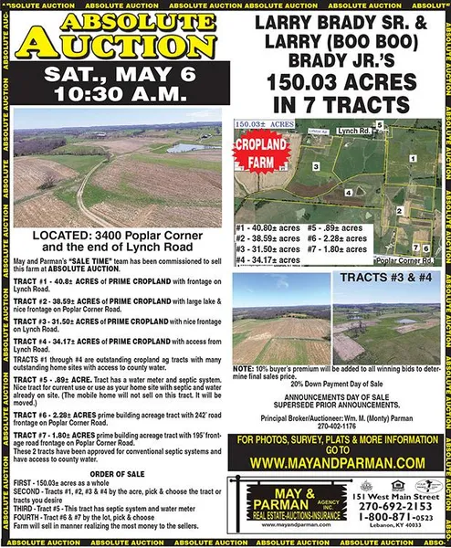 Located 3400 Poplar Corner Road And The End of Lynch Road Lebanon, KY.
