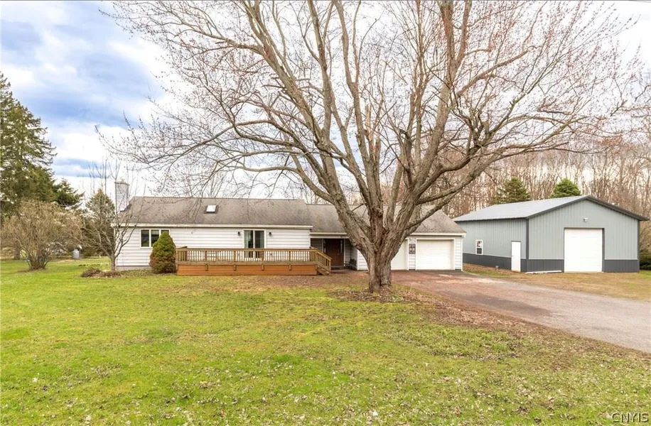 Country living at its finest!! Come take a look at this meticulous well kept and very maintained ranch.This home has endless opportunities. The ranch offers 3 great size bedrooms and 2 and a half bathrooms. The living room has gorgeous sky lights that offers natural light. Home offers a beautiful country kitchen to make many memories. Kitchen has real wood cabinetry with attached island. Kitchen also offers a coffee wet bar with eat in dining table. The possibilities are endless in the basement, very dry with great ceiling heights and can easily be completed to a finished basement of your choice. This home has had many updates such as a newer furnace and a huge 22x34 pole barn, a two car attached garage and a two car detached garage! These storage spaces offer heat and electric. This beauty offers an outstanding front and back yard with a front and back deck to enjoy summer days. Don ?t miss out this lovely gem it wont last long!
