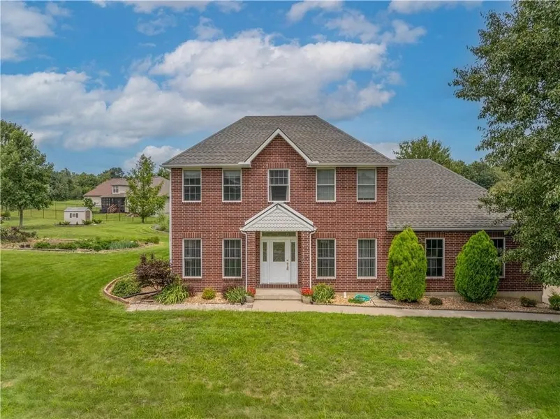 Gorgeous brick Colonial home in the stunning Lake Ridge South subdivision. This home resides on an oversized corner lot. Enter the home to find a sitting room or office area as well as a formal dining room. Keep moving forward to find a spacious kitchen adjacent to another dining area. The living room is large with a wood burning fireplace. Flooring is genuine hardwood and the walls are painted with a bright and inviting neutral color. The main level has a half bathroom and a bedroom. Step outside onto the wooden deck which overlooks a large garden, mature trees, and stunning landscaping and flowers. Upstairs you will find a loft / landing and three bedrooms. Two full bathrooms, spacious closets, and an attic storage area. The garage is clean, spacious, and ready to meet your needs. The basement is unfinished with utilities, a sump pump w/ battery backup, laundry, and ample recreation space. Come see for yourself how this house could make the perfect home for YOU!