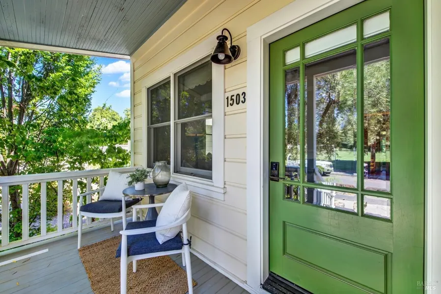 This lovingly maintained 1899 gem is ideally situated on St. Helena's coveted west side just a short walk to downtown and steps from St. Helena Elementary. Blending classic charm with modern updates, the home features Andersen windows, central heating, and upgraded electrical and plumbing. Original fir floors, soaring ceilings, and a welcoming front porch add warmth and character. The thoughtfully updated kitchen includes a Wolf gas range, built-in shelving, and ample cabinetry for style and function. With over 1,200 sq ft of living space, the home offers comfort and versatility. A detached redwood-sided garage/outbuilding provides added potential, and the yard is dotted with fruit trees including apple, fig, and plum. Whether you're looking for a full-time home or a Napa Valley getaway, this easy-care property offers timeless appeal in a prime location.
