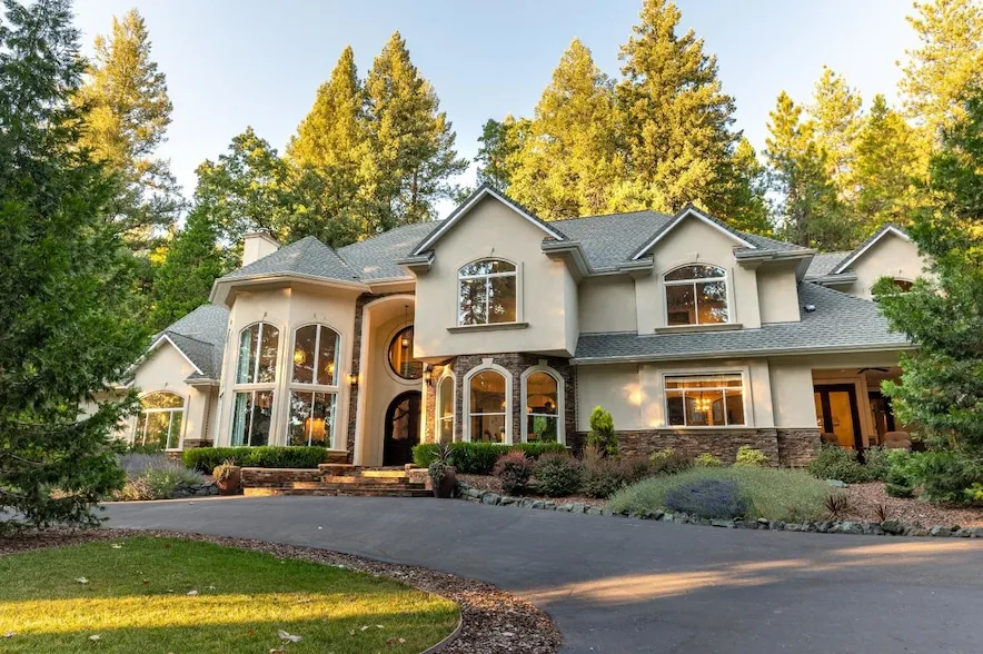 Discover this extraordinary Sierra Foothill estate just minutes from Nevada City, offering luxury, privacy, and versatility on 4.84 acres. The main home spans approx. 6,332 sqft and features soaring ceilings, stunning architectural windows, and designer finishes throughout. The gourmet kitchen boasts a custom walnut island, high-end appliances, and ample space for entertaining. The main-level primary suite is a private retreat with a spa-style bath, sitting area, dual-sided fireplace, and access to the outdoors. Upstairs includes a loft, media room, multiple bedrooms, and a second kitchenette, ideal for multi-gen living or guests. A detached 1,197 sqft guest home includes 3 bedrooms, 2 baths, granite counters, and a full outdoor kitchen with bar seating and custom decking. The property also features a barn, bocce ball court, two RV hook-ups with electric and water, and easy-care landscaping. Close to lakes, trails, ski resorts, and the charm of downtown Nevada City. A truly special place to call home.