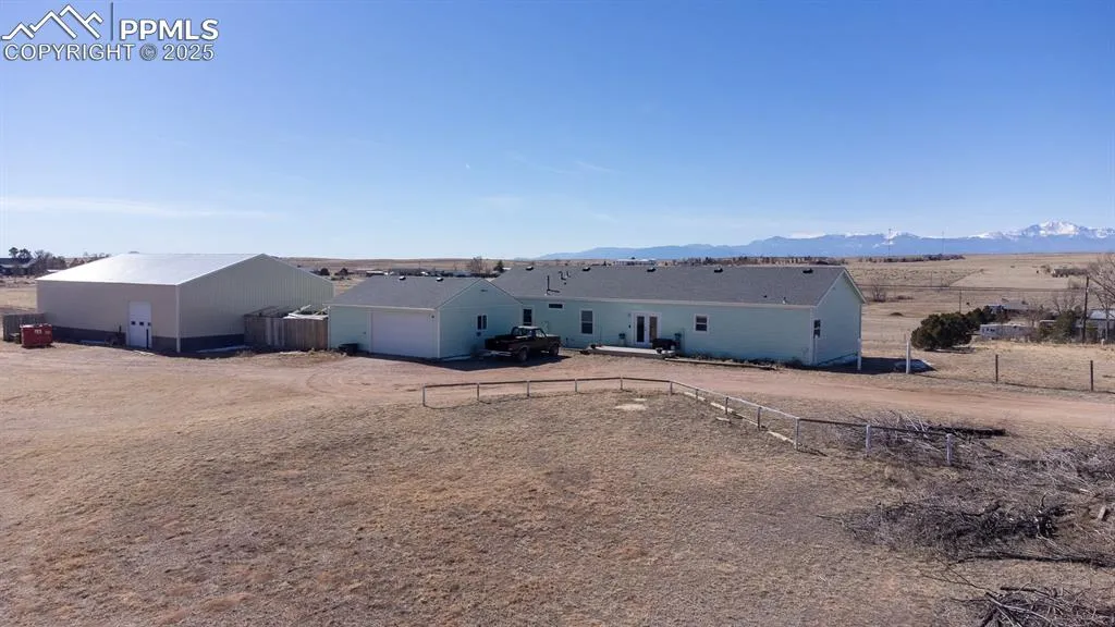 Welcome home to this 4-bedroom, 2-bathroom manufactured home located in picturesque Peyton offering a peaceful country setting with views of Pikes Peak and the Front Range. Situated on 5 acres, this property provides ample space for outdoor activities, livestock, and gardening. The home features a large kitchen with a gas stove, newer stainless steel appliances, a breakfast bar, and an eat-in kitchen area, making it an ideal space for gathering with family and friends.The master bedroom includes an ensuite bathroom with a soaking tub and a separate shower for a relaxing retreat. There are three additional bedrooms and a spacious laundry/mudroom area, perfect for country living and easy access to the detached garage and yard. The living room offers a walkout to the deck, where you can enjoy the breathtaking views, while the separate family room with a fireplace provides a cozy space to unwind.Updates include a new furnace and A/C installed in 2021. The property is fully fenced, zoned for horses or other livestock, and offers a two-car detached garage, as well as a large 40' x 60' pole barn with two 12' roll up doors, partial concrete floor, electricity, and water. There's also a 20' x 16' greenhouse with power and water and designated areas for chickens or other animals.While the home has some unfinished projects and may need some updates, it is a fantastic opportunity at a great price and has incredible potential in a tranquil, quiet neighborhood, just waiting for you to make it your own.
