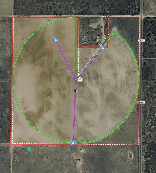 This productive +/-151-acre irrigated farm offers a strong mix of cropland, grass, and water resources with excellent access. The tract includes approximately 110 wet acres, 20 acres of dryland, and 20 acres of grass, making it well-suited for both farming and supplemental grazing. Irrigation is supported by three wells, with the west and south wells producing approximately 200 GPM each and the east well producing 100 GPM, all feeding a Zimmatic center pivot nozzled at 500 GPM. A stock tank is located at the center pivot. The ground is currently planted in wheat, with the east corners in grass and west corners in dryland. Perimeter fencing is in decent condition, and access is excellent with 1/2 mile of paved frontage and 1/2 mile of county road access on the north side, where the main gate is located. A small 10-acre lease area is excluded from the sale and currently leases for $250 annually. Wheeler County allows approximately 12 inches of water per year, and there are no water lines crossing the road.