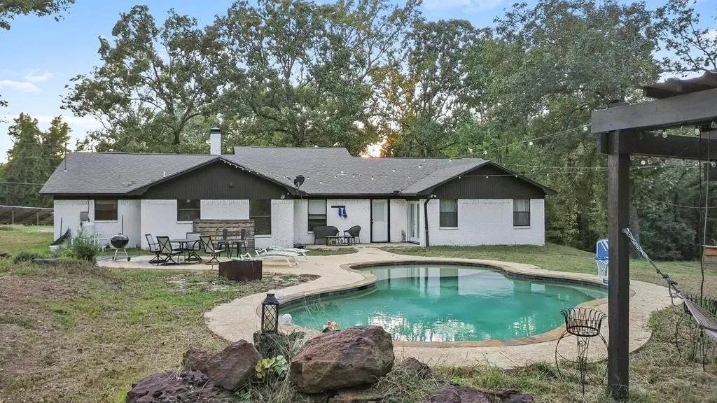 PRICE IMPROVEMENT! Spacious 3/2 Home on 2.36 Acres with Pool & Shop. Welcome to this traditional style brick home offering nearly 1,900 sq. ft. of comfortable living space on 2.36 acres. Updates include fresh paint, HVAC, and ductwork. Inside, you'll find a warm and inviting living room with a wood-burning fireplace, a formal dining area, and a flexible sunroom that can double as an office. Step outside to enjoy the sparkling gunite pool, newly built in 2023, perfect for relaxing or entertaining. A 20x40 shop with electric (separate meter) and water access provides endless possibilities for hobbies, storage, or business use. The attached 2-car garage also includes an 8x12 workshop area for added convenience. This property combines the best of country living with modern updates and plenty of space to spread out. *Solar panels can stay or owner can take them with them