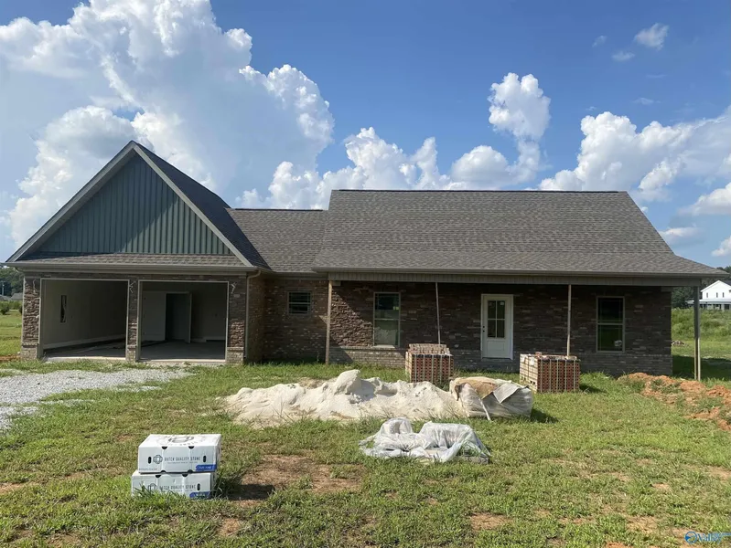 Under Construction-Attractive new 3 bedroom, 2 bath open floor plan home on half an acre with custom built cabinets, upgraded granite countertops & LVP throughout. The kitchen is equipped with stainless steel appliances w/gas stove. Natural gas log brick fireplace w/built in bookcases on each side. The secluded master bedroom has its own bath with separate vanities, tiled shower, large soaking tub & large walk in closet. Enjoy relaxing out on either of the two covered porches in the front & back. Plenty of space for entertaining. Attractive exterior with brick, stacked stone, & vinyl board & batten. Approx 5 minutes to town but yet far enough out to unwind and relax in your private oasis.