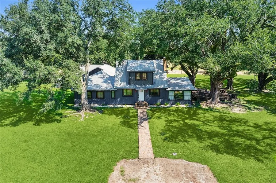 Charming 100+ Year-Old Home nestled on 11.5 picturesque acres in Folsom. This gated and treed property line provide a quiet retreat featuring beautiful updates while preserving the charm of the original. Located just a short drive from historic downtown Covington, it is the perfect blend of historic charm and modern convenience. Original hardwood floors, stained glass windows, brick flooring, and freshly painted interiors. The large sunroom and deck right outside offer a peaceful oasis with stunning views of majestic Oak trees, ideal for relaxation and entertaining. The gourmet kitchen has an 8-burner range and double oven, two refrigerators, dishwasher, and ice maker is perfect for culinary enthusiasts and family gatherings. Plenty of space with over 3400SqFt, 4 bedrooms, 4 full and one-half bathrooms, providing ample space for family and guests. Excellent floor plan with the first-floor primary suite including a sitting room/office area in its own “wing” of the home for additional flexibility and privacy. An Equestrian Paradise! For horse lovers, the property is a dream come true! The horse barn includes 6 stalls, ceiling fans that turn on automatically at 85 degrees, a covered riding area, two wash racks, a feed room, tack/office room, and a convenient half bath. An automatic fly spray system with air ventilation ensures a comfortable environment for both horses and riders. 7 fenced paddocks, each equipped with run-ins, water, and electricity, offer plenty of space for grazing. There is also a freshly leveled riding area, and a multi-bay work shed. Exterior structures measurements: Large Barn 2,183SqFt, Covered Arena 2,291SqFt, Smaller Barn 881 SqFt, and Equipment Shed with Bays 1,861 SqFt. Flood Zone C, No HOA, no water/sewer bills to pay.