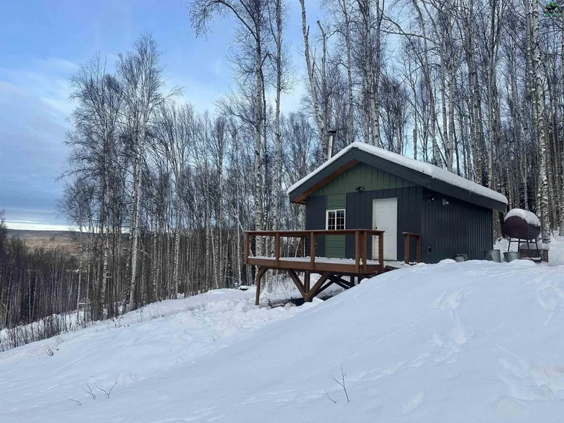 Tranquility at last! Charming cabin, with sweeping views! This meticulously maintained property is situated on nearly 2 acres of pristine ground, with birch stands and wildlife abound. Take advantage of living near trails with panoramic views of the Goldstream Valley as your backdrop! This dry cabin makes great use of its square footage, with a full kitchen, dining and living area on the main floor with a bonus lofted space for a bedroom. The cabin is adorned with modern finishes, including contemporary lighting, laminate flooring, and brand new quartz countertops! Keep the place cozy with monitor heating and a Jøtul wood stove, with the luxury of having ample firewood on the property! Relax and unwind on the deck, to the sounds of birds with scenic views. If you want to enjoy quiet living with recreation right outside your door, this property is for you!