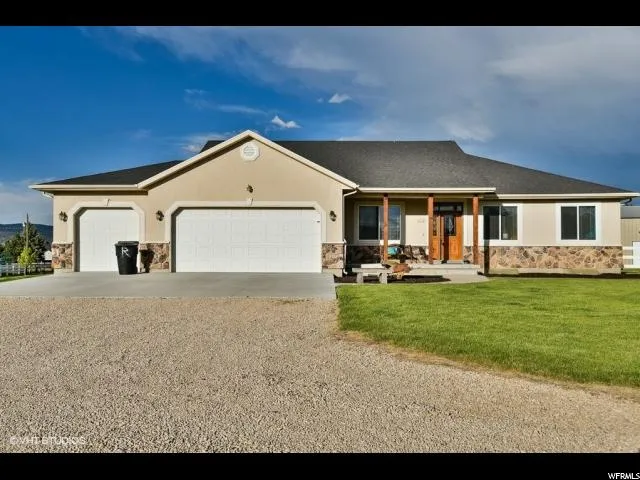 If you need open space for you, your animals & your toys THIS IS THE PLACE! 2.56 sprawling acres w/corals, pastures & a covered hay barn. Incredible 40x50 radiant heated outbuilding w/ 2-14 ft doors that open to the perfect place to store, boats, rv's, farm equipment, camping trailers, extra cars etc. Home is 100% finished w/entertaining space for days. Basement includes a large family room w/ pool table, dry bar, & kitchenette. Main level living w/a great room that spills out onto the oversized covered patio w/ custom stamped concrete & benches. Have all your family & friends over to entertain in the wide open back yard that includes a firepit, peaceful waterfall & wired for outdoor theater. 360* Views. Also includes 3 water shares of Daniels Irrigation.