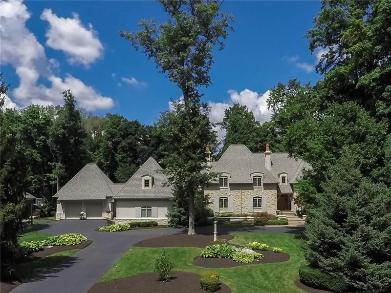 Cozy yet elegant estate with exquisite quality finishes. Nestled on rolling wooded 7 acres. Magnificent master suite with its own laundry. 4 additional bedroom suite. Gourmet kitchen with built-in fridge, additional under counter fridge, 2 dishwashers, butler's pantry. Kitchen opens to beautiful hearth room with breathtaking beams. 4 gas fireplaces throughout. Hug entertainment area and bar in lower level. In ground pool and hot tub.