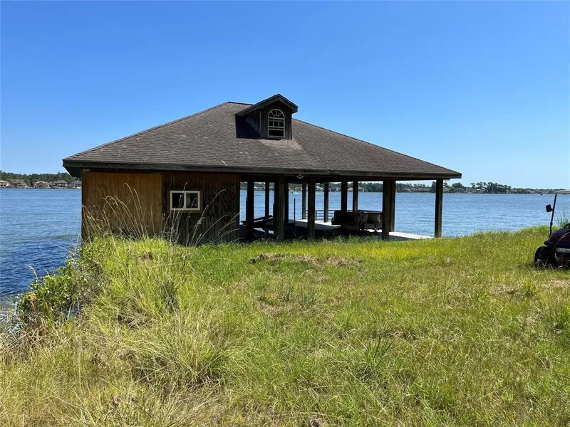 Waterfront property on Lake Conroe, looking north towards Bentwater Subdivision. This beautiful waterfront lot is a mixture of beautiful trees with open spaces. Property has a nice boat house with two stalls and a deck.