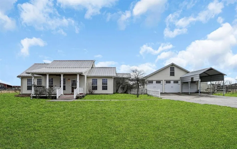 Rare chance to own 7.3 acres in the highly sought after BHISD! Located at the end of a peaceful-gravel road neighborhood. Open the gated entrance to your own CUSTOM farmhouse, complete with a detached garage and livestock barn! The property is fully fenced and cross-fenced and comes with a stocked pond. The house boasts 3 bedrooms and 2 bathrooms and an office, overlooking the field. The home beautifully displays custom wood detailing throughout and has been newly painted! Never be without power-this home comes with a whole-home generator! Enjoy your evenings on one of the two porches this home has to offer, soaking in the peacefulness this property brings. The total square footage of the property is 318,423.6 sq. ft. The property has potential to be sectioned in half in the future. Call your favorite realtor to see this property in person!