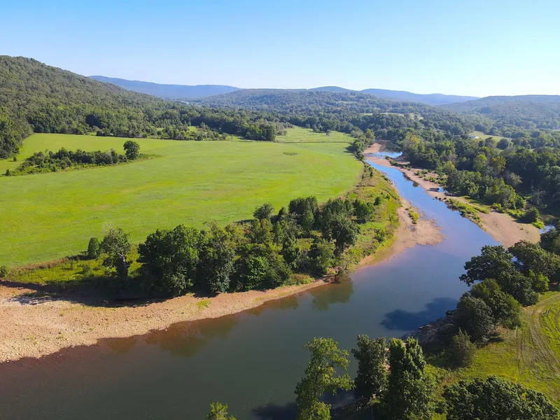 Have you dreamed of a country setting with a gorgeous river running through your property? How about one with convenient highway frontage, yet substantial privacy, with great hunting, fishing, and room for some livestock too? Would it be even better if it was located between Fayetteville and Fort Smith, just minutes off the I-49 corridor? Well, in addition to all of that, this tract comes with a move-in ready 4 bedroom, 2 bathroom home with a covered porch and multiple storage buildings! Situated over 150 yards off the highway entrance, the home sits on 20 +/- acres overlooking a flat hayfield. The remaining 70 +/- acres are easily accessed across the creek via an established, packed rock crossing that’s only ankle deep. Just downstream, along the 0.7 mile of river bed on the property, a beautiful swimming hole is waiting for your family enjoyment. Pack the cooler and lawn chairs in the truck and drive right out onto the gravel bar on those warm summer days. Take a fishing pole because the pools are loaded with smallmouth bass and catfish. Plus, the timber at the back of the property is bursting with wildlife, and borders Ozark National Forest for over 1/4 mile. Harvest the productive 40+ acres of hay ground or convert some back to deer habitat and food plots. The possibilities are endless as a permanent home place or recreational getaway. Lee Creek is a 65 mile long river beginning near West Fork, Arkansas and flowing through Oklahoma, before returning to Arkansas and emptying into the Arkansas River. It is classified as a State Scenic River in Oklahoma and an Extraordinary Resource Waterway in the state of Arkansas. Many will recognize it as the amazing waterbody that flows through Devils Den State Park, just a few miles upstream from this listing. Schedule a showing today and come see its picturesque meandering through this perfect 90 +/- acre piece of Ozark paradise!