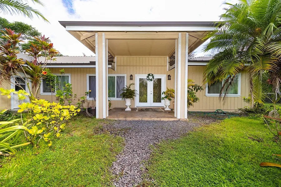 Gorgeous elegantly upgraded house with 4 BR, 3 BA + den on the sunny side of Hawaiian Paradise Park. brThere is a private well system on this property. No unsightly catchment tank is necessary. brbrStone-looking stamped concrete flooring throughout the house except for bedrooms. brThe crown molding above the alder wood soft closing cabinets and soffit rope ceiling lights in the living room and kitchen add a luxurious touch. brBeautiful granite for kitchen countertops, a large island with a sink, and bathroom countertops. All stainless steel appliances, with an extra-wide refrigerator.brThe master bedroom has two walk-in closets, nicely tiled shower rooms, a solar water heater, and much more upgrades.brbrThe large 300 sqft lanai off the kitchen has a bar counter, sink, and beverage cooler to enjoy outdoor entertaining. brSeller spent almost $100,000 on the beautiful landscape and outer and inner fencing. There is another fence along the boundary over the pine trees behind the back fence along the lawn area.brbrHawaiian Paradise Park subdivision is located in Lava Zone 3 and has Owners Association Community Center, which offers various classes & activities. There is also an active Neighborhood Watch program. For all the documents and information on Hawaiian Paradise Park, please visit http://www.hppoa.net/.brbrThe property is on 8th Ave between Kaloli & Paradise, closer to Kaloli, located within minutes to grocery stores, shops, gas stations, and restaurants. Very popular Makuu Farmers Market is on every Sunday.