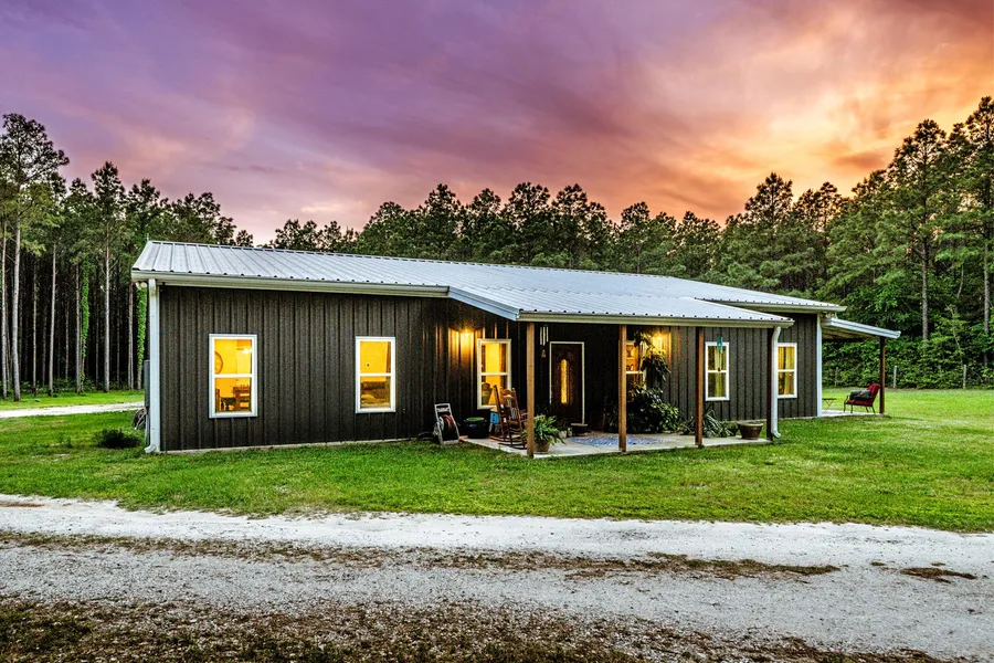 Surrounded by 3.12 acres of tranquil pine trees, this custom 2,400sf home offers the perfect blend of contemporary design and rustic charm. With 4 spacious bedrooms and 2.5 bathrooms, this thoughtfully designed residence delivers comfort, style, and space. The open-concept living area feels inviting and expansiveideal for hosting gatherings or enjoying quiet nights in. The kitchen features a large granite island with bar seating, an electric cooktop, and sleek stainless steel appliances. Each bedroom is generously sized, with ensuite access for added privacy and convenience. The primary suite is a true retreat, boasting a spa-inspired bath with a large tiled shower, soaking tub, and an impressive walk-in closet. Working from home? A private office space provides a quiet spot for productivity or study. Enjoy the outdoors with 3 covered porches and a spacious deck. The property also includes two additional storage buildings. Escape to the peace and freedom of rural living.