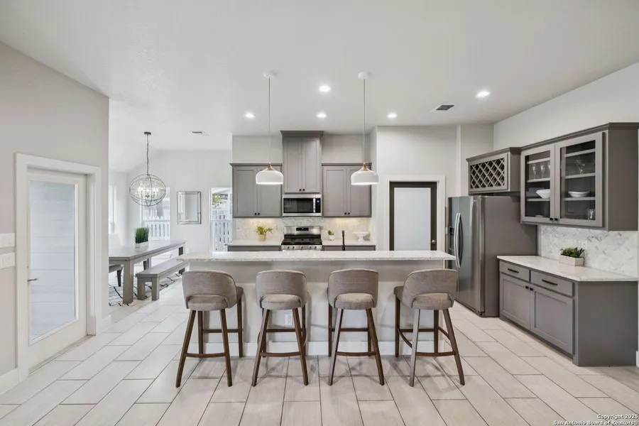 Tucked between the legendary charm of Gruene Hall and the crystal-clear waters of the Guadalupe River, this exceptional five-bedroom, four-bath residence doesn't just offer a home-it offers a lifestyle that sophisticated buyers dream about but rarely find. Location is everything, and this address delivers everything: Minutes from Gruene's cobblestone streets, live music venues, and riverside dining. A short drive to New Braunfels' acclaimed wineries, Schlitterbahn, and downtown's burgeoning culinary scene. Quick IH-35 access puts you 30 minutes from San Antonio's culture and Austin's innovation, yet you're worlds away from the chaos. The home itself is a masterclass in thoughtful design: The first-floor primary suite is your private sanctuary-spa-inspired bath with soaking tub, frameless shower, and generous walk-in closet. A main-level guest suite offers multi-generational flexibility or the perfect executive home office. Upstairs, three additional bedrooms and an expansive game room provide space for everyone to spread out. The chef's kitchen commands attention: oversized island for gathering, professional-grade gas cooking, stainless appliances, and a walk-in pantry that actually fits your Costco runs. It flows effortlessly into living spaces designed for both grand entertaining and quiet evenings. Outside, your private retreat awaits: Extended covered patio with ceiling fans, custom deck for sunset cocktails, and a fully fenced backyard that's equally suited for fire-pit gatherings or letting the dogs run. No HOA means no restrictions-add a pool, build a workshop, plant your vineyard. This is your canvas. The details that matter: Dual HVAC systems for customized comfort, owned water softener, granite throughout, designer finishes that won't date themselves, and the kind of floor plan that makes daily life feel effortless. This isn't just another listing-it's the rare combination of prime Hill Country location, thoughtful luxury, and absolute freedom to live life on your terms.