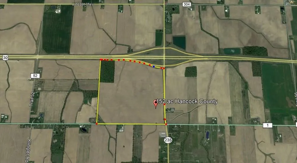 APX. 152 ACRES, SECTION 33, ORANGE TWP., HANCOCK CO. SR. 235 & US 30. GREAT POTENTIAL SPOT FOR A FUTURE BUSINESS, LOTS OF POSSIBILITIES. APX. 138 AC TILLABLE & 12 AC WOODED. ADA SD. ANNUAL TAXES-$3754.90