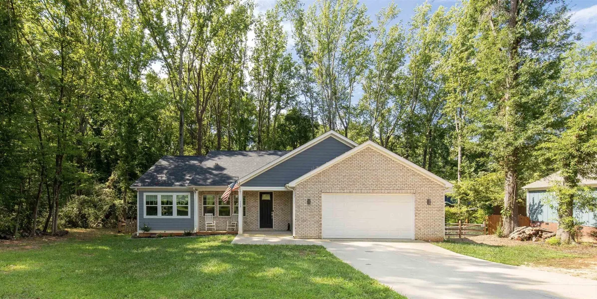 Tucked away in the heart of historic downtown York, this 2023-built ranch offers the perfect blend of fresh, modern living and classic Southern charm. This beautifully crafted ranch offers a thoughtfully designed open floor plan featuring a spacious great room, dedicated dining area, and a stunning kitchen complete with a large island, quartz countertops, and stainless steel appliances—perfect for everyday living and entertaining. The luxurious primary suite is a true retreat with two walk-in closets and a spa-like ensuite bath showcasing dual vanities, a private water closet, and an impressive wet-room with a soaking tub and dual shower heads. Two additional generously sized bedrooms, a second full bath, and a well-appointed laundry room round out the home’s interior. Enjoy quiet mornings on the covered front porch or relax on the back deck overlooking the fenced, tree-lined backyard offers the perfect place to relax.