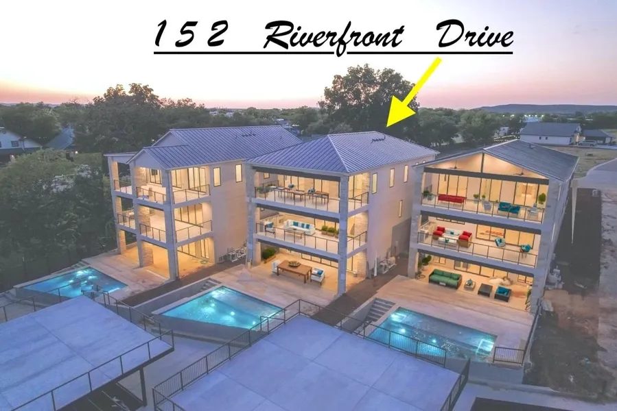 152 RIVERFRONT DRIVE - One of 3 Luxury Waterfront Villas just completed on Lake LBJ. 152 RIVERFRONT DRIVE is the perfect place for family and friends to enjoy relaxing afternoons on your Lakeside veranda overlooking Lake LBJ and the storied & pristine “Moss Family Ranch". Located at the private & gated 2 Rivers Landing subdivision with its convenient "close in" Kingsland location, 5 minutes to HEB, & within site of Lake LBJ's premier fun spots, WakePoint, Boat Town & Liberty Island. Inside 152 RIVERFRONT DRIVE there’s enough room for the whole family and friends with over 4500 ft.² of living space featuring 7 bedrooms, (including bunk rooms) and 7 ½ baths. The Swimming Pool Level features a 2nd living area/ game room with big sliding doors that open to a covered porch and outdoor kitchen. There’s over 3000 ft.² of outdoor living space, 2 covered patios, poolside patio, + a party deck atop your private boat dock on Lake LBJ. Special interior finishes include Cali Legends plank flooring, granite & quartzite countertops, schluter brushed nickel fixtures, Kitchen-aid Frigidaire, & LG appliances, Visual Comfort lighting throughout. Large, amenity filled homes on Lake LBJ are very successful short-term rentals, generating $200,000 + annual revenue - spreadsheets available upon request. Enjoy it part time, rent it out part time. A Lake home that helps pay for itself !!