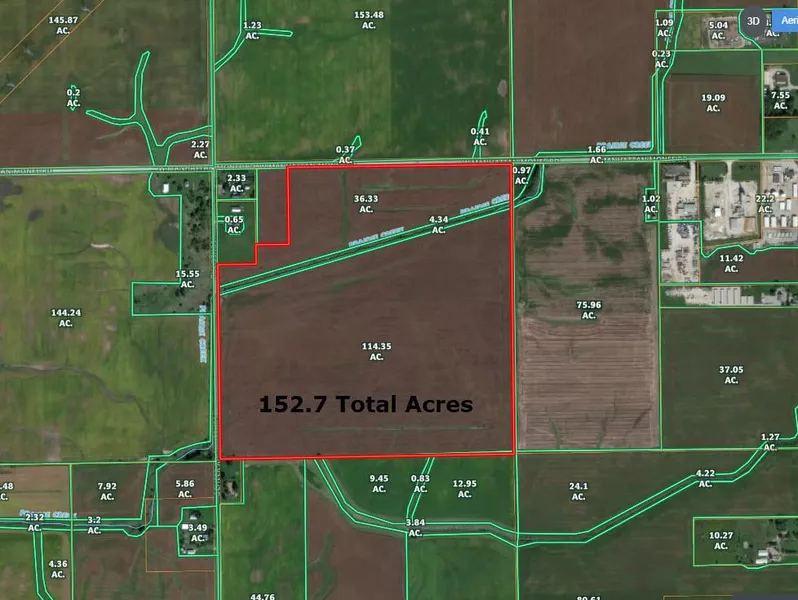 152.7 acres in Green Garden Township. Well located farmland on Manhattan - Monee Road just half a mile west of Rt. 45. Low Will County taxes. 2016 Taxes were $2,400 or $15.72/ac. Easy access to I-57 at Monee, and I-80 in Mokena. Excellent long term hold.