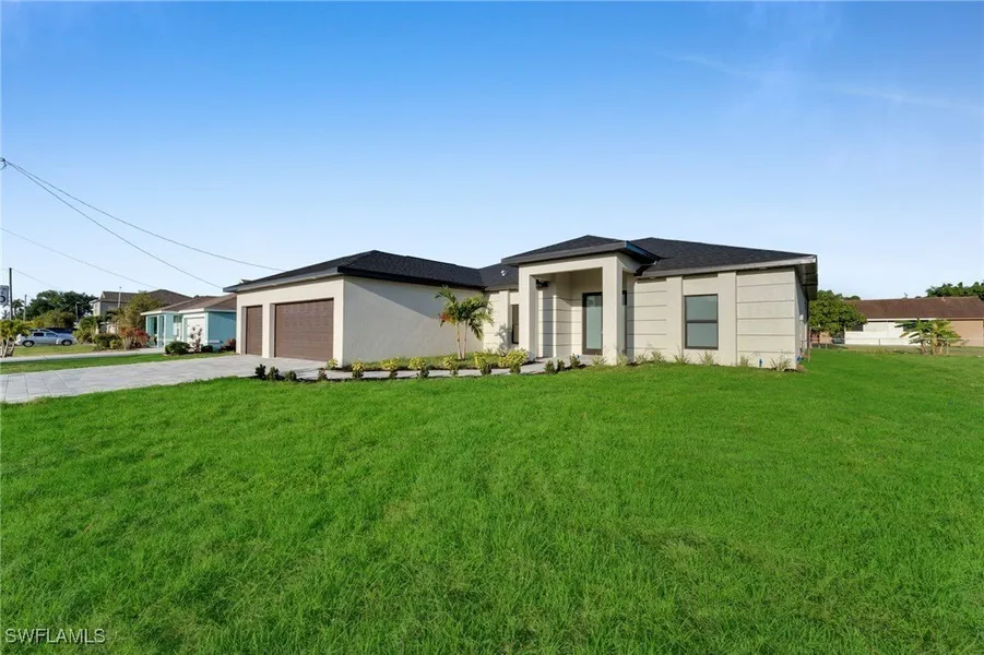 Location, Location, Location! This brand-new pool home offers luxury and comfort with a spacious 14' x 28' pool featuring a sundeck and a fully screened-in lanai. Inside, you'll find soaring vaulted ceilings, 8' doors, and elegant 24" x 48" tile throughout. The kitchen boasts plenty of cabinetry, and the home is built with hurricane-impact windows, a paver driveway, and a 3-car garage. It also includes a whole-house reverse osmosis system for pure, clean water throughout. Stylish, solid, and move-in ready!