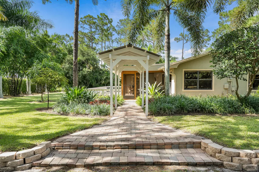 Elegant and open, you'll love this beautiful home located on desirable B Road South in Loxahatchee Groves. As you journey throughout this property you will be struck by the size and beauty of the grounds and the excellent design of the home. Your new kitchen is designed to make excellent use of space, utilizing plentiful cabinetry to ensure you have countertops free of clutter. The screened porch will quickly become your favorite place to have your morning coffee. Both bedrooms are spacious and you'll even have office space when you need to quietly get some work accomplished. The jewel of this property is undoubtedly the manicured 5 acre grounds with horse facilities. The entire property has been fenced and you will tend to your horses while surrounded