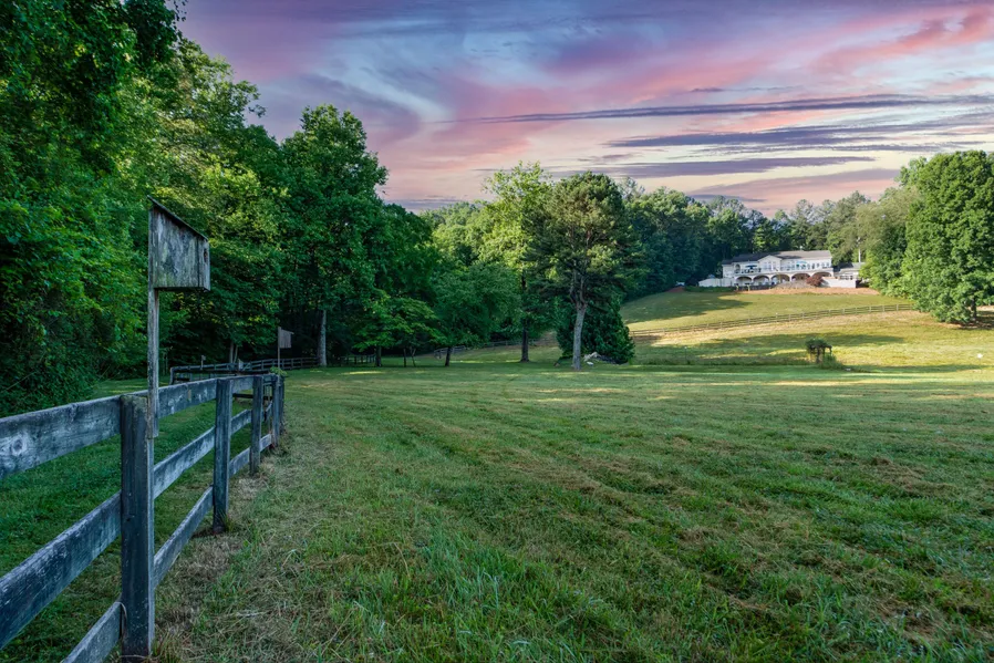 H & R Ranch was established in 1997. This 7278 square ft. southwestern style ranch home overlooks a picturesque green valley garnished with over 2700 feet of fast flowing Fisher Creek tumbling through the middle with towering mountains in the backdrop. 50' x 120' Equestrian Exercise Barn with large tack room, stables and hay storage. Round Pen and lots of pasture for grazing. Well established 10 acre bottom land hay field with thick lush green fescue. Custom built Mortise & Tennon Party pavilion with ceiling fans, attached cooking shed furnished with BBQ Grills, sinks and power for chillers and night lights that is strategically located in secluded wooded shady area by creek for the maximum in privacy and entertaining. Travel a bit further up the creek to a very private screened room perched upon a majestic rock with a balcony deck overlooking roaring waterfall for unmatched overnight adventures! Property also features a second home, a gorgeous 1489 square ft log construction style home with attached 2 car garage, wrap around deck that overlooks a small pond and party deck. Both homes are powered with natural gas whole house Generac generators so no need to worry about the power going off. 3 car detached garage with side carport addition. One bay in garage has been converted into a gym that comes fully furnished with equipment. A farm like this is much easier maintained with adequate equipment so it will come with a New Holland T4.75 Cab Tractor with Air Conditioning, 4 x 4 synchronized shuttle shift and universal loader with forks, small and large buckets. Additional attachments include a 12' batwing mower and many other implements to keep the farm in great shape. Also comes with a 4 wheel drive Yamaha Viking ATV side by side so you can patrol the boundaries of your ponderosa if something pops up on security cameras. Nice sized tractor shed to park all expensive equipment in the dry. Many various collectable bronze statues and water fountains to accent the property. The main dwelling features a home theatre and the most exciting game room you can imagine! Have friends over to sing Karaoke surrounded by life sized statues of singing legends like Elvis and the Blues Brothers. Memorabilia of James Dean and Marilyn Monroe with antique flashing marquee signs. If the Karaoke doesn't seem to be working, crank up the Rowe-AMI CD Juke Box and get your jam on! Roulette Table, Pool Table, 3 slot machines and antique leather top card table just to name a few. If it gets to crowded at the game room bar, send them down to the card table room to the custom built wagon wheel bar with 2 horse saddle bar stools. To many fine details and southwest decor items to capture in the description but take a close look at the photos and count on many pleasant surprises when you visit. On the back side of the property for your shooting pleasures is a 5 station Skeet Shooting area with a DC powered Clay thrower and nice hillside backstop for handgun practice into silhouettes. 30+ Blueberry bushes that are well established and producing so many berries that you can share with friends or turn them into a cash crop. 6 massive Scuppernong vines that are loaded down this year and ready for your wine making adventures. Great places for row crop favorites if you can fence out the many deer during the growing season. This property has a little bit of everything. Very unique and diverse. Make an appointment to come see to get the fullness of its potential.